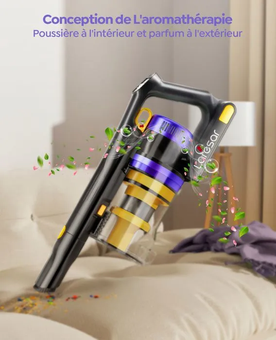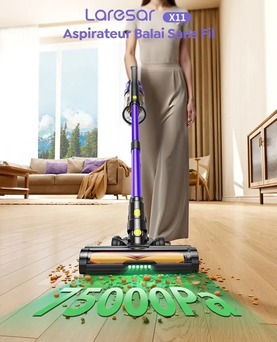Esta aspiradora de escoba eléctrica y aspiradora vertical Laresar X11 no solo está diseñada para una limpieza sin esfuerzo, sino que también incluye pastillas perfumadas incorporadas, dejando tu hogar con un olor fresco y agradable después de cada pasada.