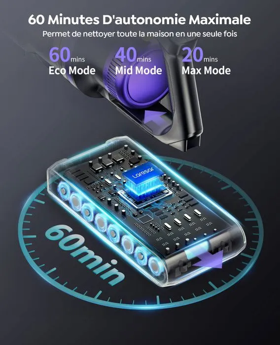 💜Duración prolongada de la batería y fácil carga en la pared: esta aspiradora inalámbrica está equipada con una batería de 8 celdas, que proporciona 60 minutos de duración de la batería en modo ECO. 💜